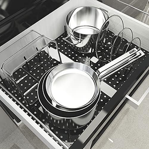 - Versatile & Space-Saving: Whether placed in a drawer or on a countertop, this plate rack for cupboard maximizes vertical storage, saving precious kitchen space. Use it to organize plates, cutting boards, pans, or even vinyl records. Its sleek grey design blends seamlessly with any kitchen decor.